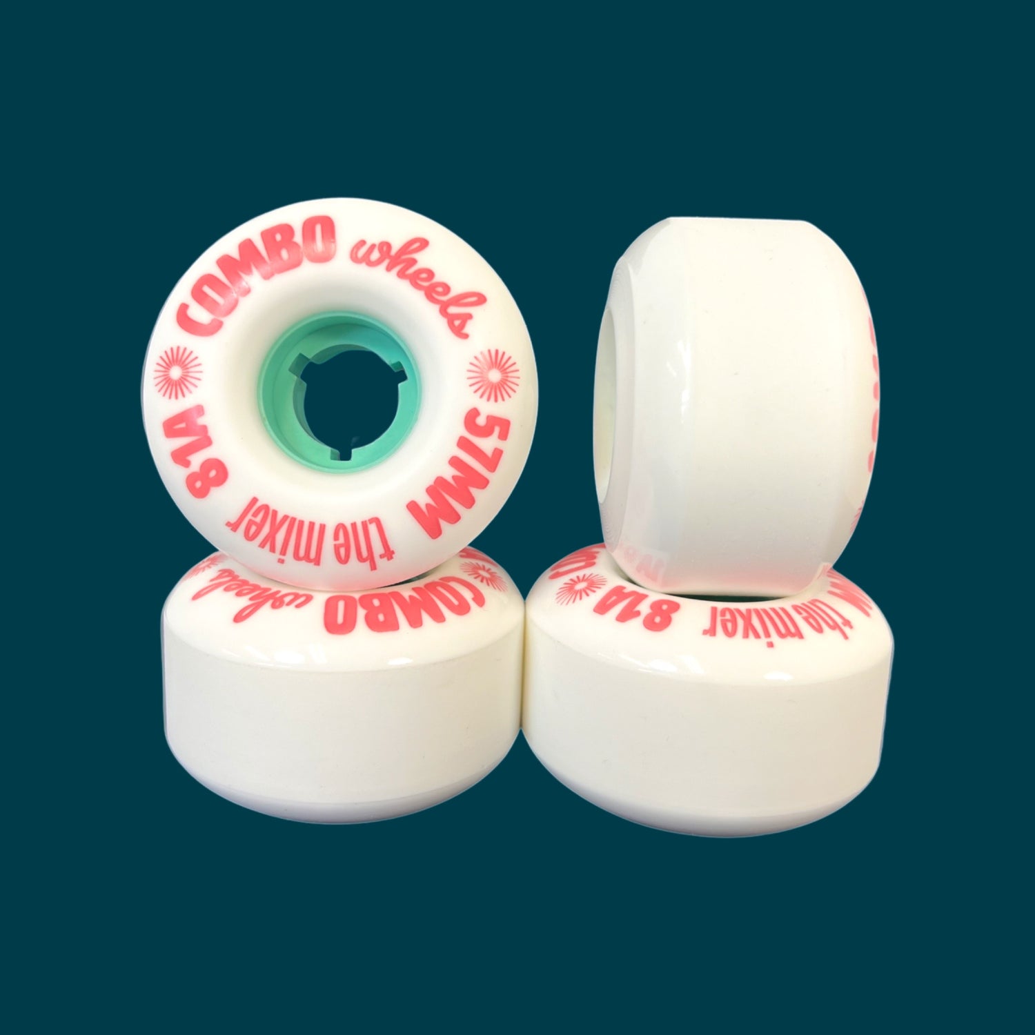 The Combo Mixer is the perfect choice in a wheel for the Sapling Complete. Shaped like a street wheel but with the plush urethane of a soft wheel, the Mixer suits most applications from hitting the streets to slashing on hills. The small size keeps them light for flip tricks and hitting the park while the soft urethane and round lips make them great for cruising, carving and some sliding. Combo wheels are poured in the USA in a premium urethane formula.